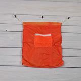 Drawstring Backpack : Repurposed Orange Parachute with Warning Label Applique listed in:
