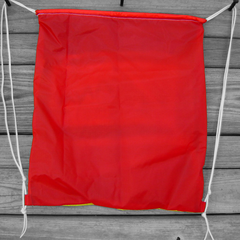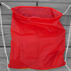 Red Drawstring Backpack with Neon Yellow Katana Parachute End Panel Applique listed in: